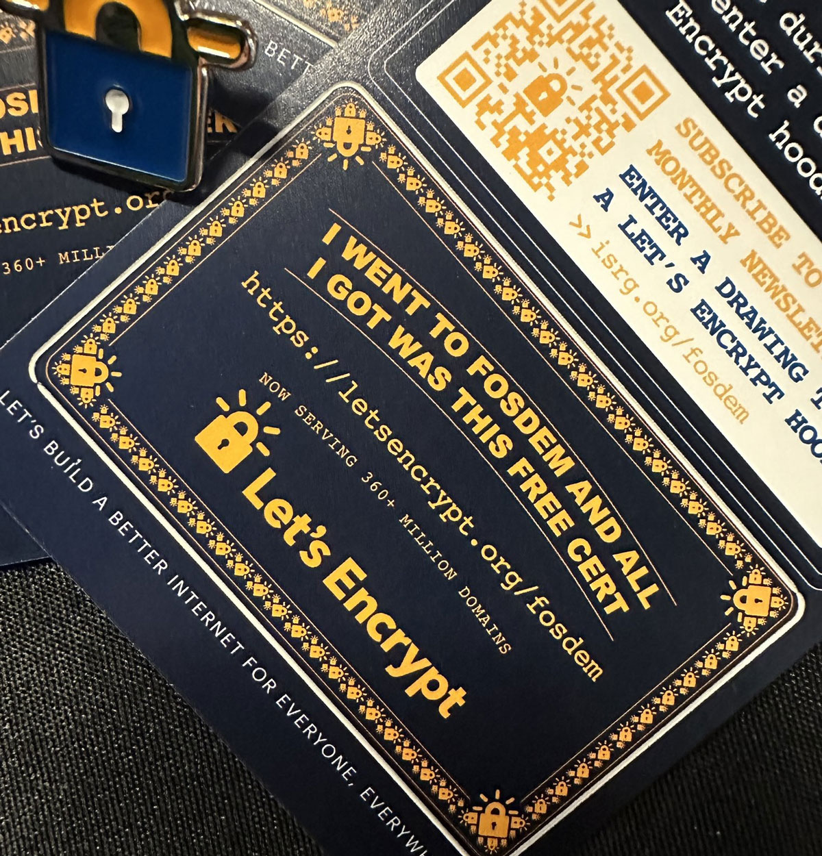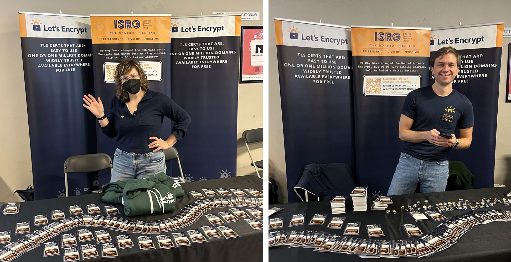 We didn't attend FOSDEM just representing Let's Encrypt but also its parent nonprofit, ISRG and two sibling projects, Divvi Up and Prossimo. It was wonderful to be able to share a bit more about how we're advancing our mission of building a more secure and privacy-respecting Web. If you, like a few folks we talked to, aren't up to speed on ISRG, take a read through our 2023 annual report.